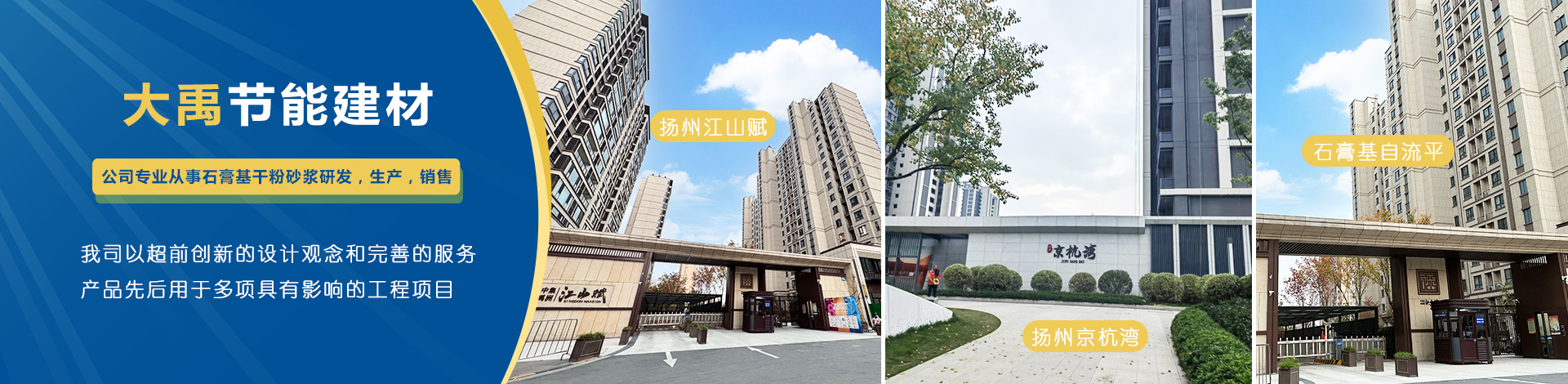 揚(yáng)州市大禹節(jié)能建材科技有限公司成立于2005年9月,位于聯(lián)合國(guó)宜居城市---江蘇省揚(yáng)州市,地處江都經(jīng)濟(jì)開(kāi)發(fā)區(qū),與揚(yáng)、鎮(zhèn)、泰三市接壤,交通十分便捷。公司是專業(yè)從事石膏基干粉砂漿研發(fā),生產(chǎn),銷(xiāo)售一體化的綜合性科技型企業(yè),為國(guó)家標(biāo)準(zhǔn)GB/T2862-2012《抹灰石膏》的參編單位?! 」緭碛袊?guó)內(nèi)一流的特種砂漿生產(chǎn)線,并配有各種先進(jìn)的檢測(cè)儀器,年生產(chǎn)能力可達(dá)10萬(wàn)噸。各崗位管理及技術(shù)人員齊備,對(duì)產(chǎn)品···
